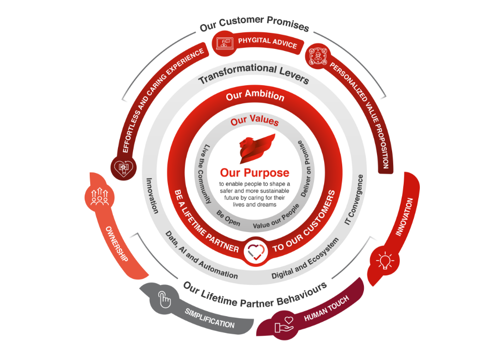 Masih banyak peluang yang belum kami terokai untuk mengeratkan hubungan kami dengan 57 juta pelanggan Generali di seluruh dunia. Untuk memanfaatkan peluang ini, kami perlu membuat anjakan yang besar daripada peranan Penjual Produk kepada Penyedia Penyelesaian Bersepadu. Kami perlu menerapkan Pemudahan & Inovasi dengan Empati & Keprihatinan merentasi seluruh perjalanan pelanggan dalam semua titik dan saluran interaksi kami. Perkara ini memerlukan kami membina hubungan dengan pelanggan, menghasilkan cadangan yang khusus secara konsisten untuk memberikan pengalaman yang menggembirakan kepada mereka, selain bertindak secara lebih proaktif dalam interaksi kami. Hasilnya, persepsi pelanggan akan bertukar daripada ‘Saya perlukan insurans’ kepada ‘Saya mahukan insurans’.