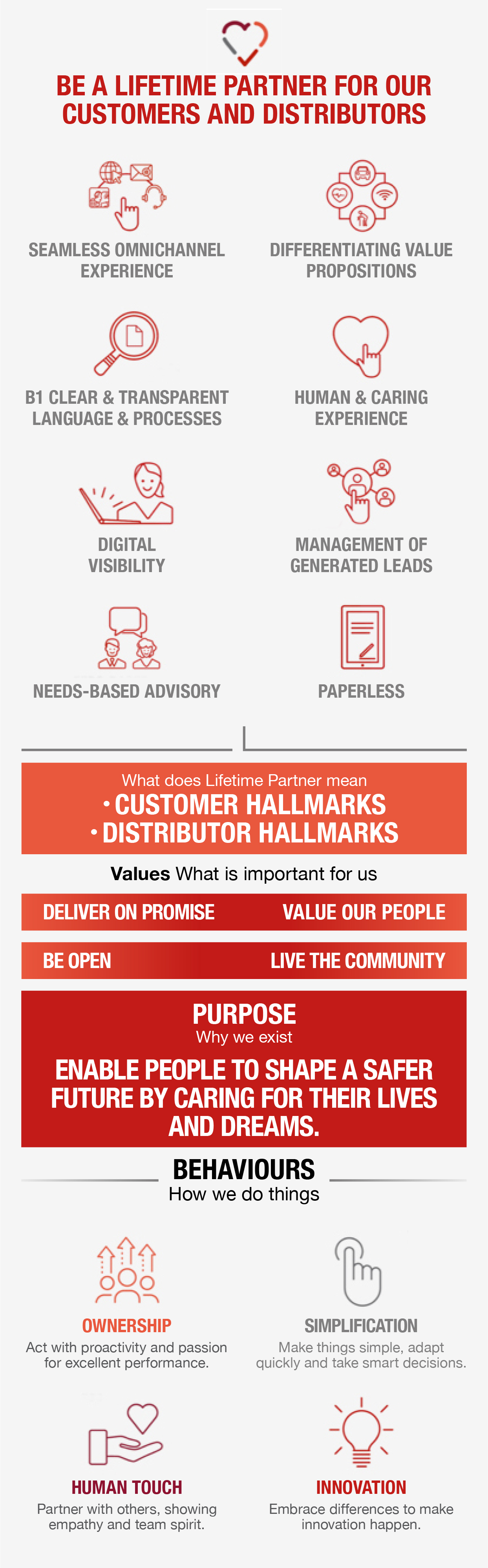 Mengamalkan tingkah laku ini dalam setiap perkara yang kami lakukan setiap hari tanpa mengira tahap atau kedudukan kami dalam organisasi adalah kunci bagi membentuk masa depan kami sebagai Rakan Sepanjang Hayat kepada pelanggan kami serta bagi membina tempat yang terbaik untuk bekerja dalam industri kami. Ini merupakan kaedah yang ingin kami gunakan dalam mengukur pencapaian kami.